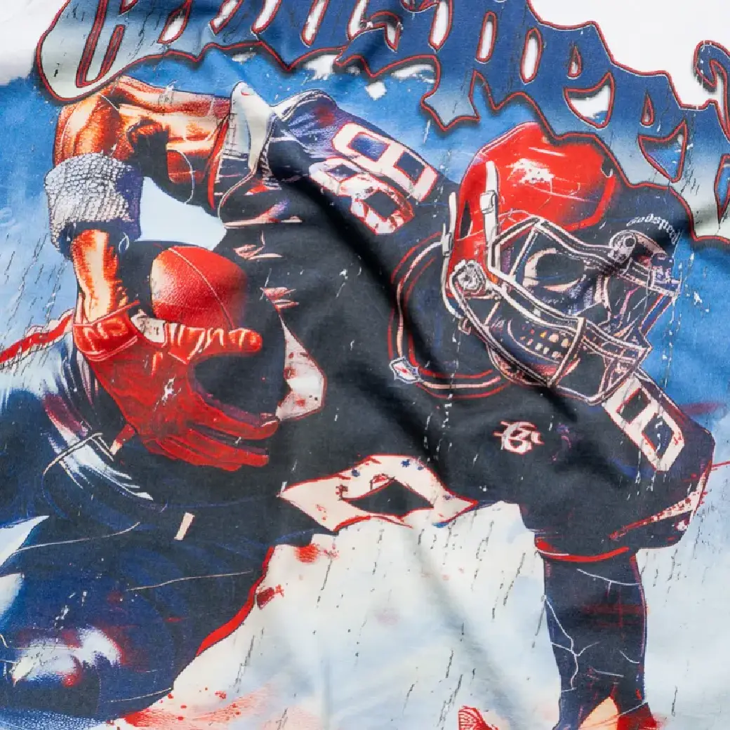 Graphic: Varsity-style “Godspeed” logo across chest