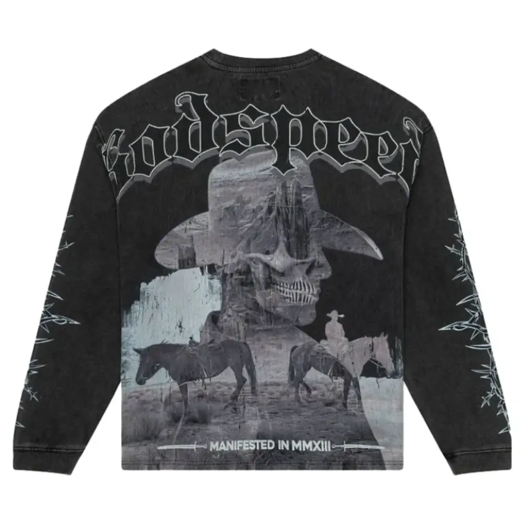The Godspeed OG Logo Once Upon a Time L/S T-Shirt is a tribute to legends in the making. Featuring a dramatic, storybook-inspired front and sleeve graphic alongside the signature Godspeed logo, this long sleeve tee brings narrative and fashion together. Designed for those who believe every street has a story, and every look has a legacy.